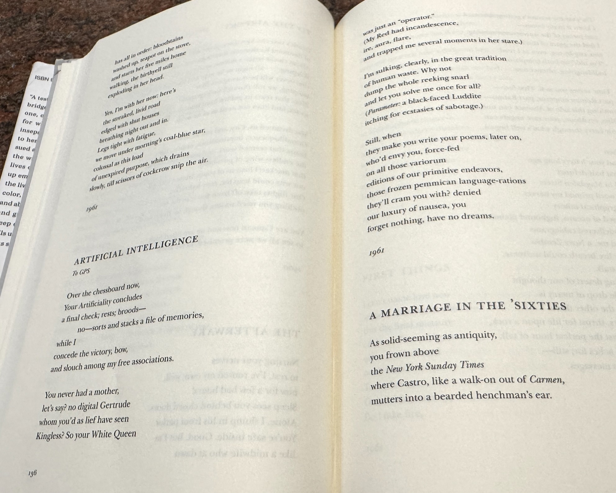 But first here is the evidence that it is genuine. It is a very big book of poetry, by Adrienne Rich. I had not heard of her before, but now I own 1,119 pages of her poetry, only one page of which is devoted to Artificial Intelligence, so I am reading things of which I was not previously aware.