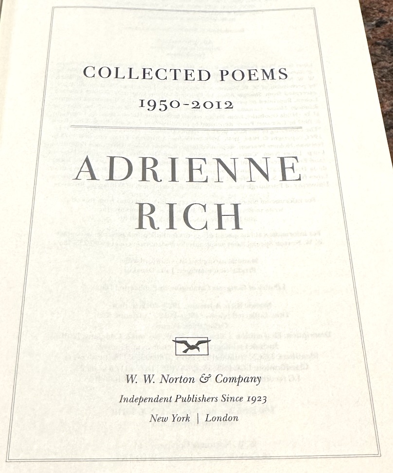 Here is the poem by Adrienne Rich, written in 1961, with the typesetting used in the above book.