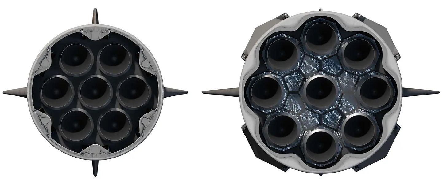 Additionally New Origin announced a new heavier, taller, and with larger payload faring, version, the “New Glenn 9×4” with two extra engines on each stage. Looking up from below the first stage the engine arrangement goes from the one on the left to the one on the right.